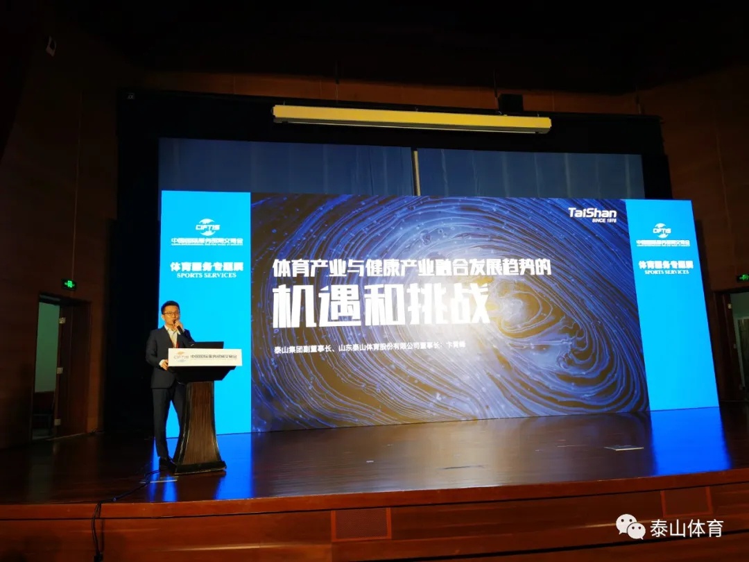 论坛中,卞青峰首先对于能够参加本届国际体育服务贸易发展论坛,与国际、国内体育产业界专家、朋友们共同学习交流感到非常荣幸。他简要分享了当下体育产业与健康产业的行业发展背景,对于泰山集团在“品牌建设”、“科技创新”、“国内外优质资源”等板块的核心优势进行了阐述。他表示:“面对当前体育与健康产业发展的大好机遇,泰山集团将立足中国,面向全球,积极促进业态转型升级与新旧动能转换,整合国内体育行业资源,与教育、卫健、文化、旅游、康养、家政等跨界领域合作,以打造‘中国体育健康服务的领先者’、‘全球体育科技的领导者’为核心使命,通过做大做强高端制造、体育服务、体育+、设施建设与运营四大路径,未来五年,实施‘千亿企业,引领万亿体育产业’核心战略,积极推动体育产业与健康产业高质量发展。”