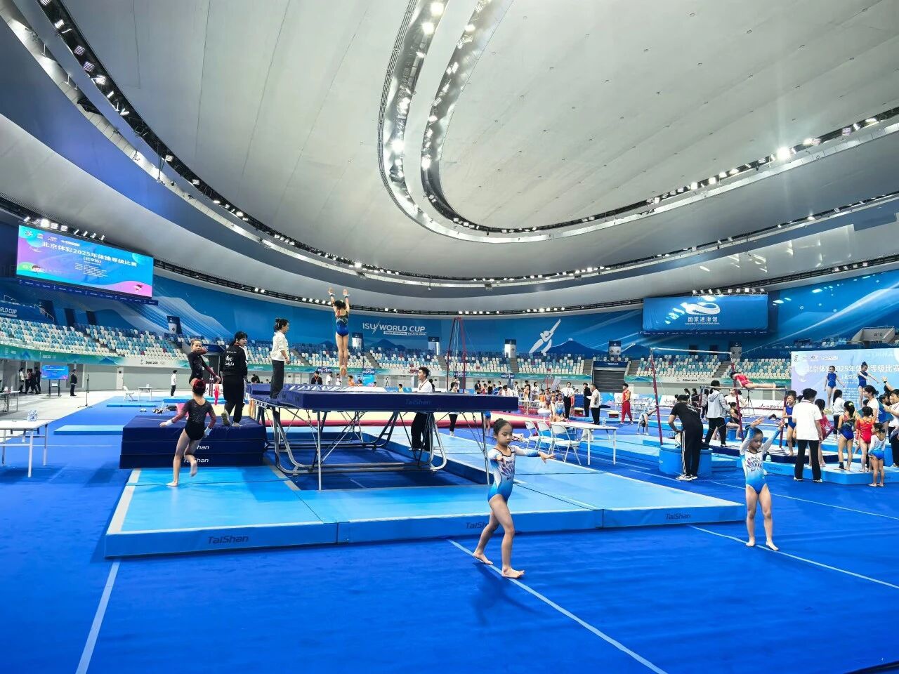 在国家速滑馆“冰丝带”,体操等级比赛汇聚了520名不同年龄段的运动员同台竞技。作为助力体操人才梯队建设的重要赛事,这场比赛为各年龄段选手搭建了一个专业的竞技与考级平台,更通过规范赛事体系发掘与储备体操后备力量。